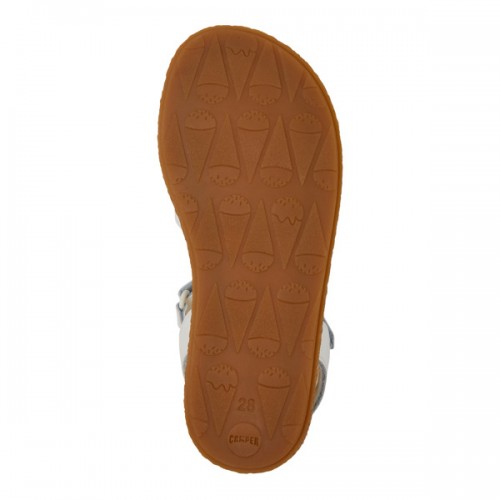 Εκρού δερμάτινα παιδικά πέδιλα με πάτους με επένδυση από δέρμα χωρίς χρώμιο και εξωτερικές σόλες από 100% λάστιχο.